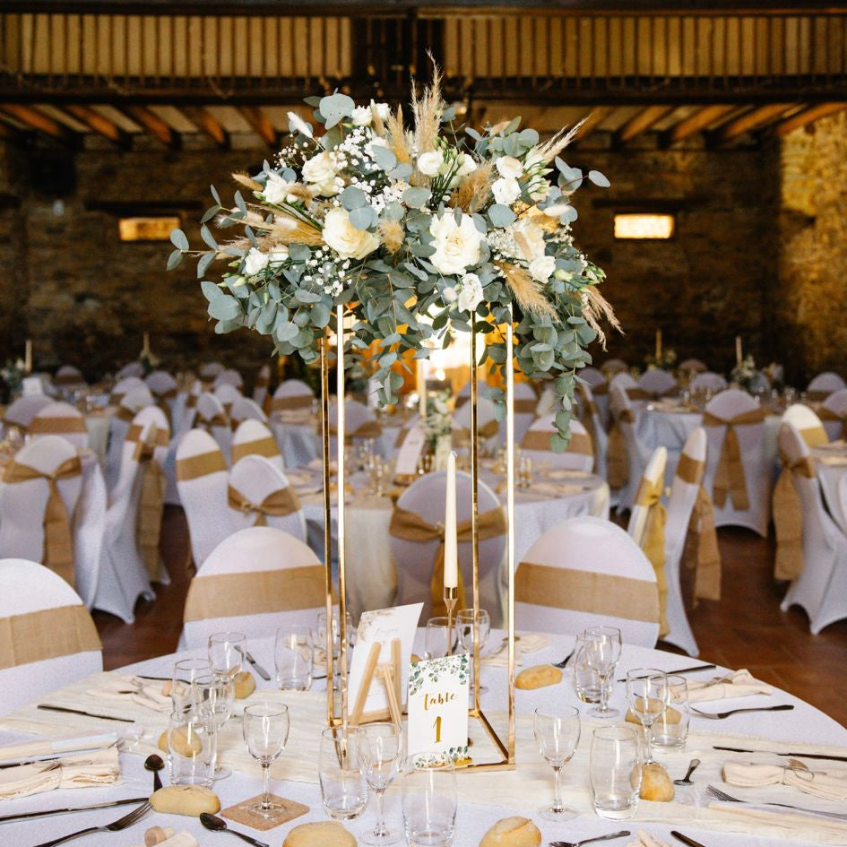 Pour les grands mariages ou décors d’envergure, j’intègre également des fleurs fraiches, sélectionnées avec soin, lorsque cela est possible et cohérent avec le projet.